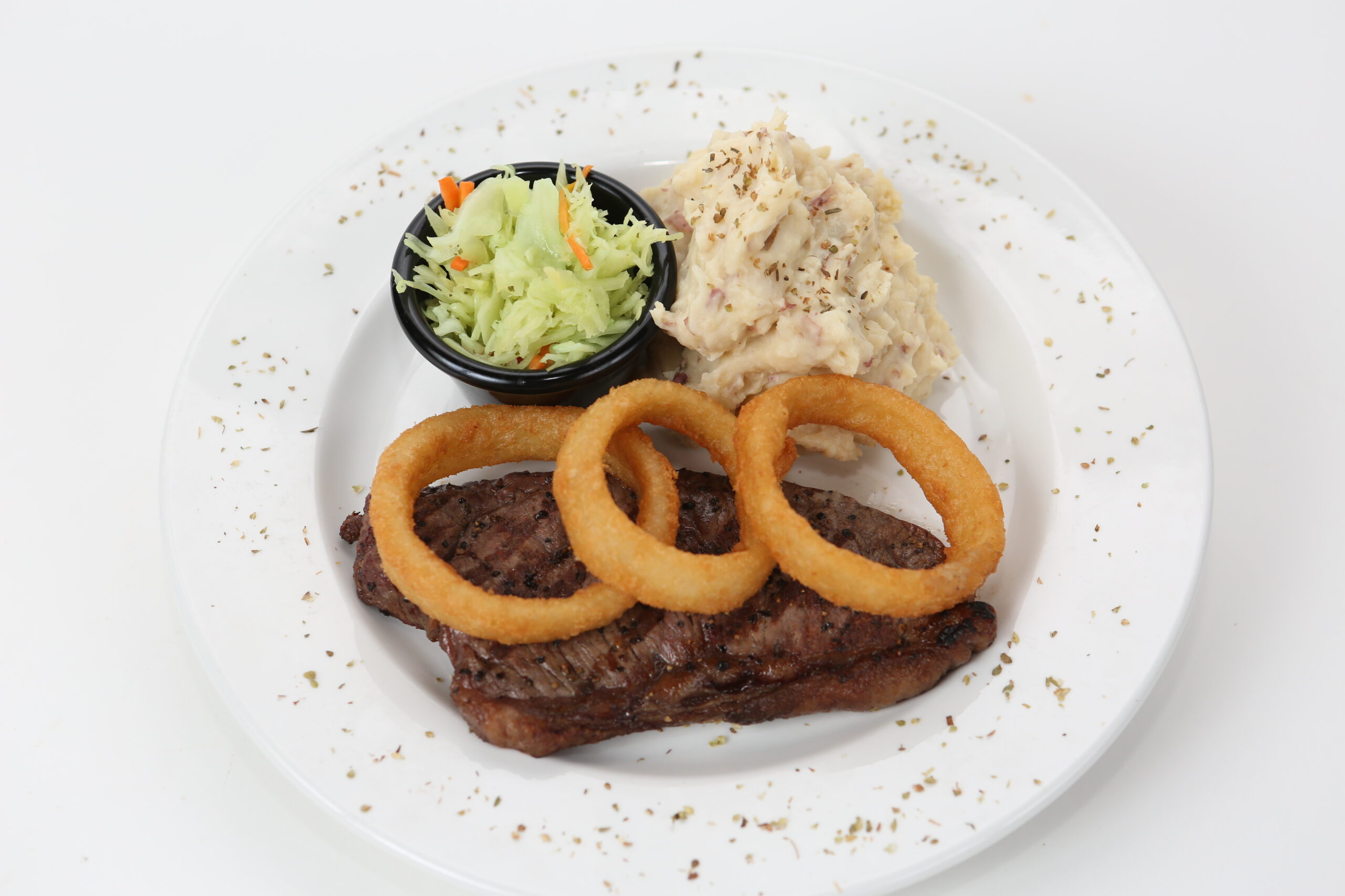 * All our steaks are served with your choice of fries, garlic mashed potato or a loaded baked potato (shredded cheddar and mozzarella, bacon bits, green onions and sour cream) and coleslaw.